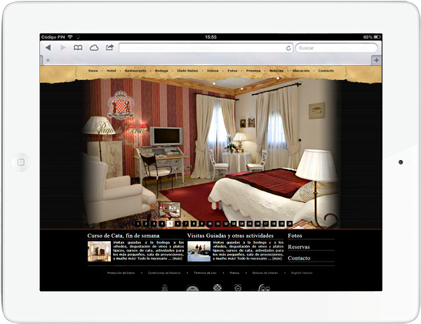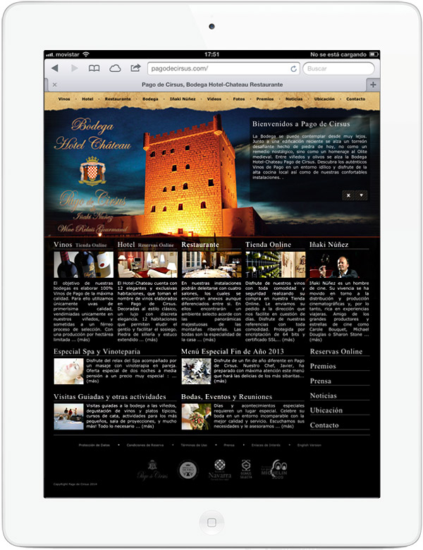 El objetivo en este proyecto consistió en dotar tanto a la bodega como al hotel de todos los servicios necesarios para su comercialización y promoción en Internet. Se realizó su nueva web de hotel y bodega (2008, actualmente en desarrollo la nueva versión), en atención a criterios de diseño del cliente y nuestros criterios técnicos en cuanto a posicionamiento SEO. Se instala sistema de reservas de hotel y tienda de vinos online.